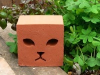 レンガの置物/親ねこ/(猫の顔のくりぬき)カラー:ブラウン/レッド/ベージュ